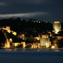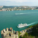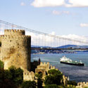 Rumeli hisarı is a fortress located in Istanbul, Turkey on a hill at the European side of the Bosporus just north of the Bebek district; giving the name of the quarter around it. It was built by the Ottoman Sultan Mehmed II between 1451 and 1452, before he conquered Constantinople. The three great towers were named after three of Mehmed II's vezirs, Sadrazam Candarlı Halil Pasha, who built the big tower next to the gate, Zağanos Pasha, who built the south tower, and Sarıca Pasha, who built the north tower.