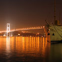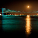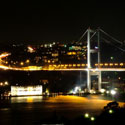 The Bosphorus Bridge, also called the First Bosphorus Bridge (Turkish: Boğaziçi Koprüsü or 1. Boğaziçi Koprüsü ) is a bridge in Istanbul, Turkey spanning the Bosphorus strait (Turkish: Boğaziçi). The bridge is located between Ortaköy (European side) and Beylerbeyi (Asian side). It is a gravity anchored suspension bridge with steel pylons and inclined hangers. The aerodynamic deck is hanging on zigzag steel cables. It is 1,560 m long with a deck width of 39 m. The distance between the towers (main span) is 1,074 m (World rank: 13th) and their height over road level is 105 m. The clearance of the bridge from sea level is 64 m. It was the 4th longest suspension bridge in the world when completed in 1973, and the longest outside the United States of America.